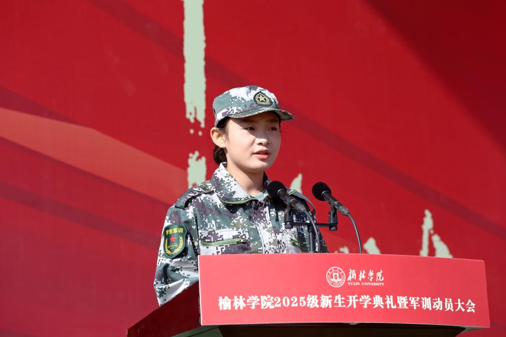 新生代表王佳瑞激动又自豪地讲述了自己以612分的高考成绩毅然选择榆林学院的情缘。代表所有新生表态,未来四年在榆林学院的百年沃土上,不忘初心,肩负重任,敢想敢为,善作善成,用奋斗书写青春故事。磨练意志,笃实奋进,扎根榆林,服务榆林,成为有理想、敢担当、能吃苦、肯奋斗的时代新人,为建设榆林贡献青春力量。