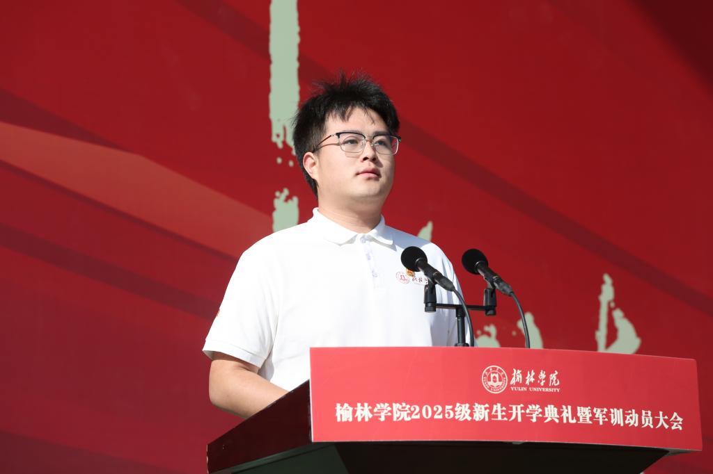 教师代表肖殷从要学会“归零”,重新出发;要珍惜时光,不负韶华;要立足榆林,胸怀天下三方面寄语2025级全体新生,少年应有鸿鹄志,当骑骏马踏平川,树立远大理想,勇担时代使命,潜心向学,勇于实践,主动拥抱人工智能,在追求真理的道路上不断超越自我,用实际行动践行“请党放心,强国有我”的青春誓言。