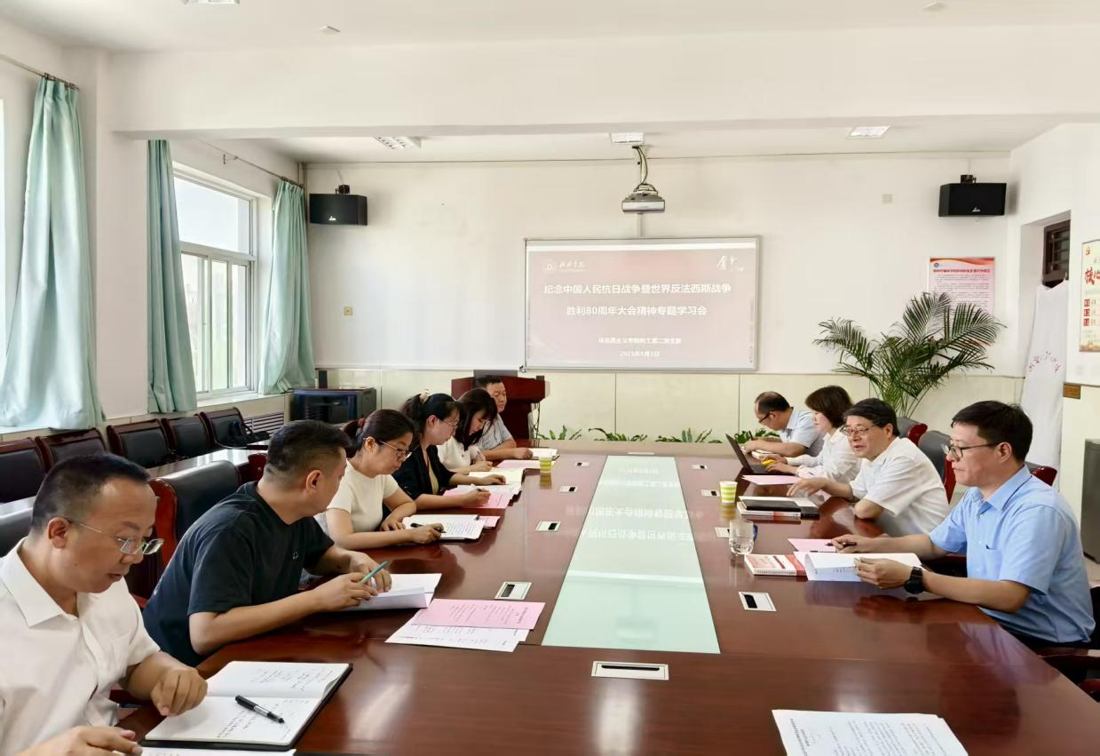 为纪念中国人民抗日战争暨世界反法西斯战争胜利80周年,深入学习贯彻习近平总书记关于弘扬伟大抗战精神的重要讲话精神,9月3日,马克思主义学院教工第二党支部召开“纪念中国人民抗日战争暨世界反法西斯战争胜利80周年大会”精神专题学习会,党委书记张新柱以普通党员身份参加,马克思主义学院领导班子成员列席会议,马克思主义学院教工第二党支部书记李飒飒主持会议。