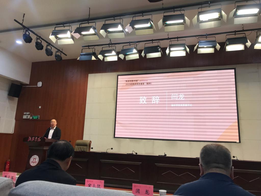 为深入推动全民阅读,助力书香榆苑建设,9月7日上午,由中国图书馆学会阅读推广工作委员会经典阅读推广专业组主办,沧州市图书馆学会、沧州市图书馆、榆林学院图书馆和文学院共同承办的“再发现图书馆”—2025经典阅读走基层(榆林)活动在榆林学院逸夫楼报告厅隆重举行,党委副书记闫龙应邀出席并致辞。中国图书馆学会阅读推广工作委员会经典阅读推广专业组主任、河北省图书馆学会副理事长、沧州市图书馆学会理事长、沧州市图书馆馆长宋兆凯,中国图书馆学会阅读推广工作委员会经典阅读推广专业组副主任、南开大学教授徐建华,中国图书馆学会阅读推广工作委员会经典阅读推广专业组委员、中国索引学会理事、延安大学延安时期红色文献数字化保护与开发利用工程技术中心负责人贾翠玲,中国图书馆学会阅读推广工作委员会经典阅读推广专业组委员、吉首大学图书馆工会主席、湘西州图书馆学会副理事长王月娥等嘉宾出席会议,我校文学院负责人、教学副院长,马克思主义学院党总支副书记,师生代表及周边社区读者共计160余人参加活动。会议由我校图书馆负责人主持。