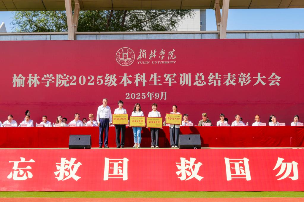 金秋九月,硕果盈枝。9月14日上午,榆林学院2025级新生军训总结表彰大会在学校田径场隆重举行。党委副书记、校长康伟,党委副书记闫龙,副校长姚学慧、卜耀军,中国农业科学院研究员杨俊诚,武警榆林支队政治工作处主任陈聪,武警榆林支队执勤一大队大队长、军训团团长张家超出席大会。各二级学院党总支书记、副书记,相关职能部门负责人,全体承训教官,2025级新生辅导员班主任和全体2025级本科生参加大会。大会由武装部负责人主持。