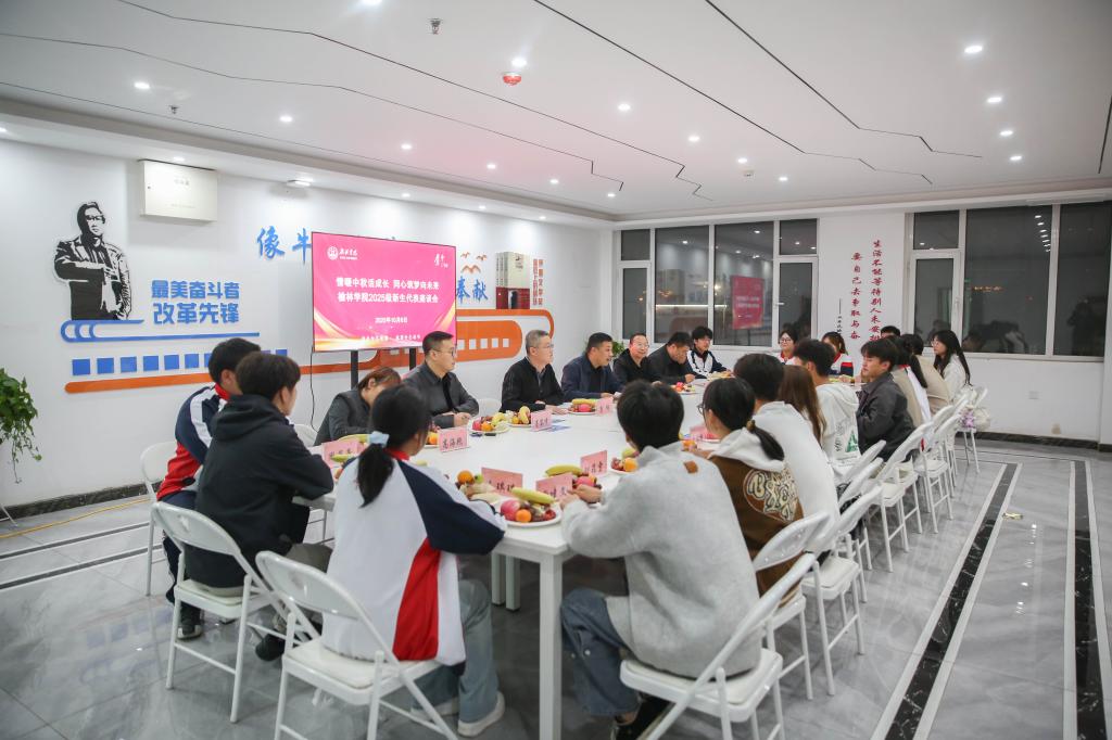 座谈会现场气氛活泼热烈,新生代表们深情回顾了入学以来的所思所感,畅谈了对大学生活的期待与规划。康伟认真倾听,不时与同学们互动交流。