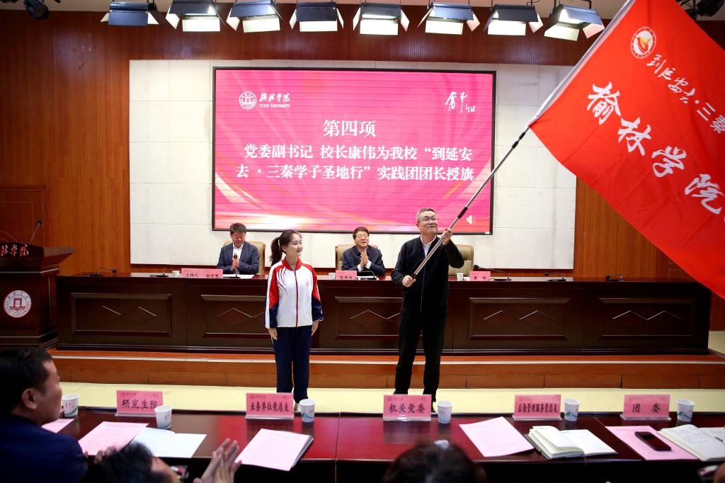 10月12日上午,榆林学院在逸夫楼一楼报告厅隆重举行“到延安去”·三秦学子圣地行暨“走进公寓问需求,畅谈平凡话奋斗”活动启动仪式。党委书记张新柱、校长康伟出席,副校长姚学慧主持。