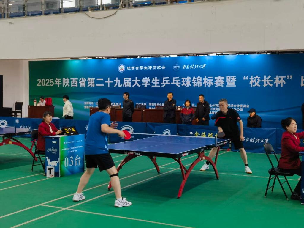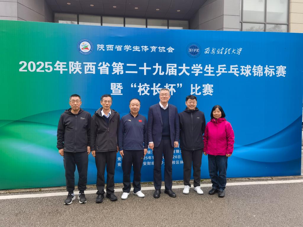 10月20日至25日,陕西省第二十九届大学生乒乓球锦标赛暨“校长杯”比赛在西安财经大学举行。本届比赛由陕西省学生体育协会主办,西安财经大学承办,吸引了全省73所高校的840余名运动员参与。我校由校长康伟,党委副书记马亚军,党委副书记、纪委书记苗延宏,副校长姚学慧、卜耀军组成的代表队,参加比赛并荣获佳绩。