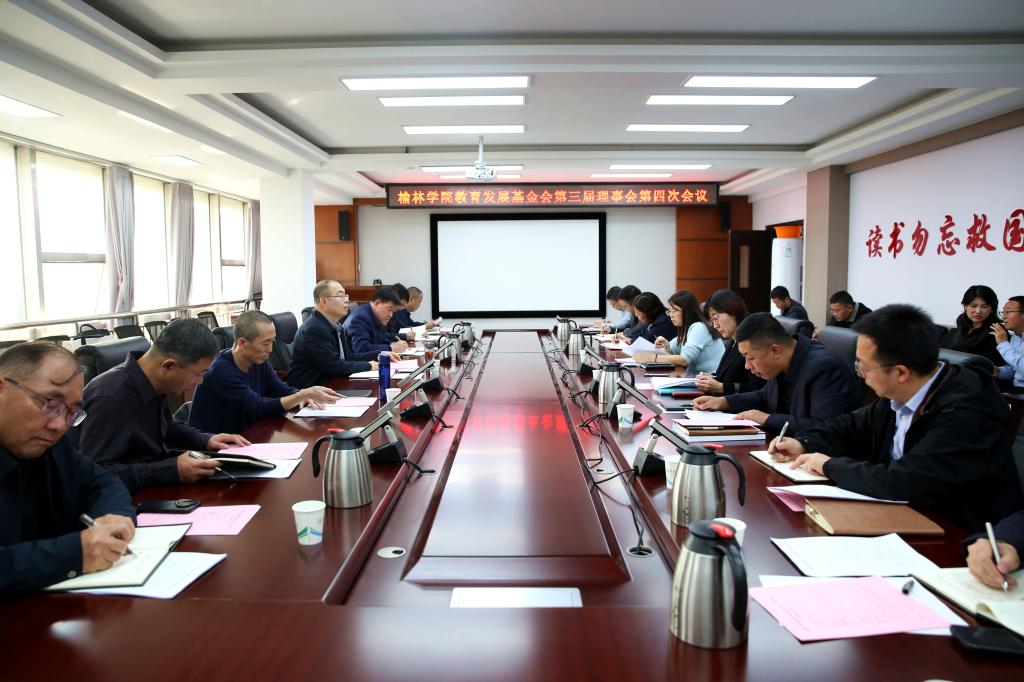 10月29日下午,榆林学院教育发展基金会第三届理事会第四次会议在行政楼四楼会议室顺利召开。榆林学院党委书记、基金会理事长张新柱授权榆林学院党委副书记、基金会副理事长闫龙主持会议,陕西天丰昌健康产业集团公司董事长、基金会副理事长杨玉强,西宁众森商贸有限公司董事长、基金会副理事长王泉,第三届理事会理事、监事及基金会办公室全体成员参加。