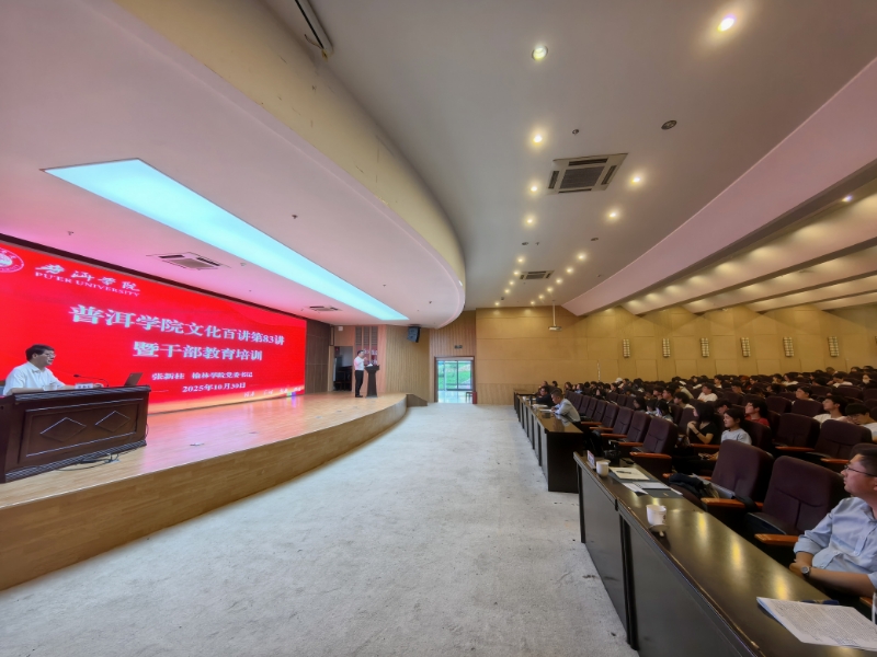 应普洱学院的邀请,10月30日,我校党委书记张新柱在普洱学院举办的“普洱学院文化百讲第83讲暨干部教育培训大会”上作了题为 《建强地方应用型本科高校的探索与实践》的专题报告,普洱学院党委书记胡国云主持,校领导、处科干部和师生代表三百多人参加。