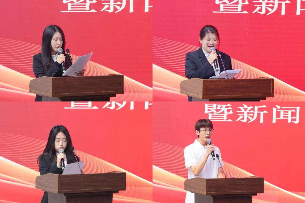 学生代表融媒体中心运营部负责人尧露娇、广播台负责人常钰瑶、记者团负责人张星宇、新生代表樊易初分别作了交流发言。