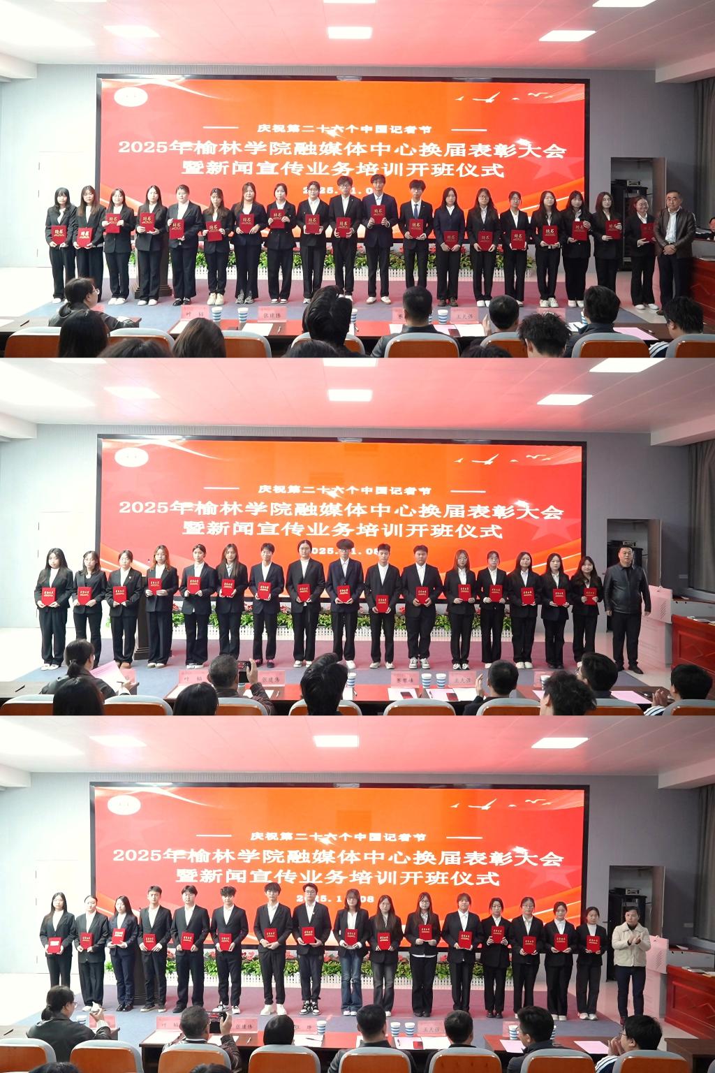 为深入贯彻落实习近平新时代中国特色社会主义思想与习近平总书记关于宣传思想工作的重要论述,加强学校宣传工作队伍建设,持续深化大宣传格局,全面提升新闻宣传工作水平与从业人员业务能力,11月8日,在第26个中国记者节到来之际,我校在子洲楼458报告厅召开融媒体中心换届表彰大会暨新闻宣传业务培训会。榆林市新闻工作者协会副主席张建伟出席,我校党委宣传部、学工部、团委、人事处参加。相关部门及各学院负责宣传工作教师和负责新闻宣传学生骨干以及融媒体中心全体成员参加培训。