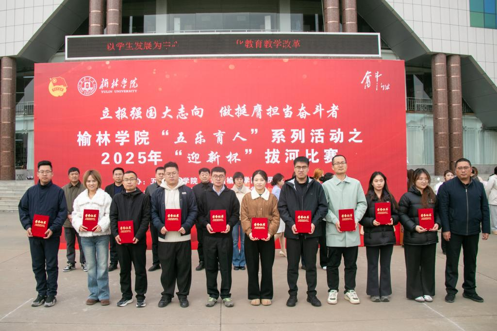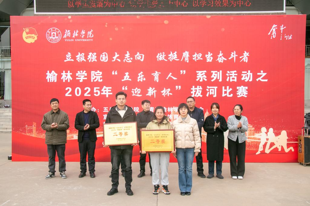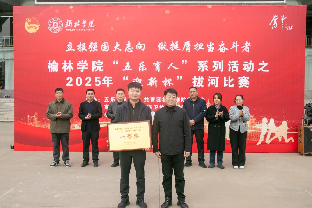 为持续深入推进我校“五乐育人”工程,精准对接大一新生校园融入需求,以活动为纽带赋能强化集体凝聚力与学生荣誉感,打造“团结奋进、实干担当”校园生态,11月9日至11月10日,由五乐育人学院、校团委主办的“立志报国大志向 做挺膺担当奋斗者”榆林学院“五乐育人”系列活动之2025年“迎新杯”拔河比赛在榆林学院奋斗广场成功举行。副校长姚学慧出席活动,宣传部、团委、保卫处、体育学院、五乐育人学院等相关负责人参加颁奖仪式。