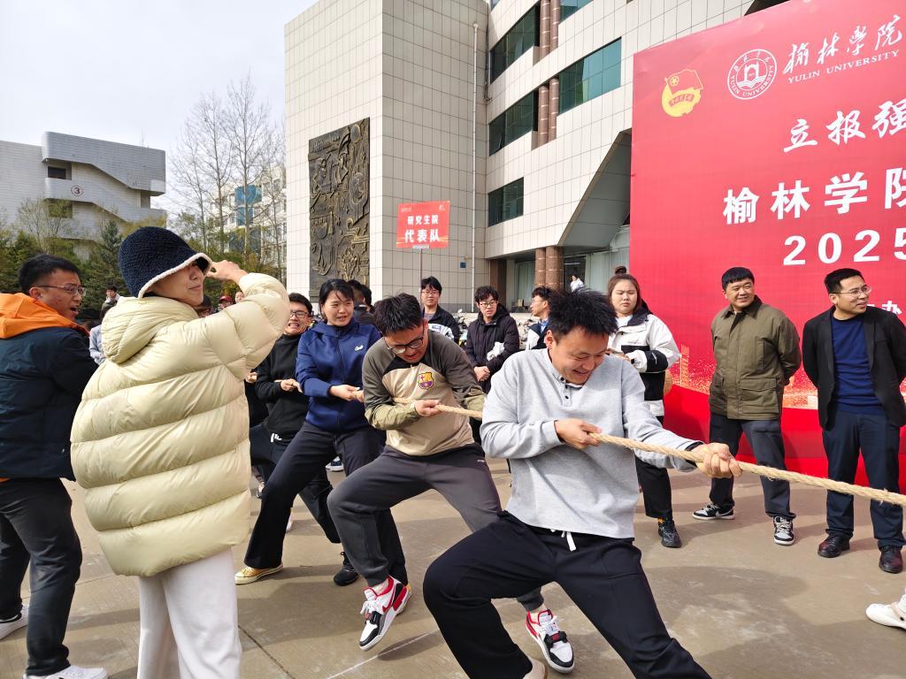 此次拔河比赛既是我校“五乐育人”工程“乐跑强体”模块的生动实践,更是以体育为载体深化实践育人、培育校园特色文化的鲜活范例。近年来,学校以“五乐育人”体系为核心,精心培育强风拂柳励志跑团及羽毛球、篮球、足球等覆盖广泛的优质文体社团,常态化举办大学生体育节、各类球类联赛、啦啦操展演等多元品牌赛事,并将志愿服务时长认证、赛事参与情况纳入“第二课堂”评价体系,切实达成“在体育中享受乐趣、在运动中增强体魄、在锻炼中锤炼意志”的育人实效。下一步,学校将以此次赛事为重要抓手,持续深化体教融合,把 “红色基因立根、奋斗精神铸魂”的育人主题深度融入各类实践活动,进一步激活青年学生参与体育锻炼的内生动力,让“团结协作、顽强拼搏”的精神品质成为榆苑学子的鲜明特质,为加快建设特色鲜明的一流应用型大学汇聚青春力量。