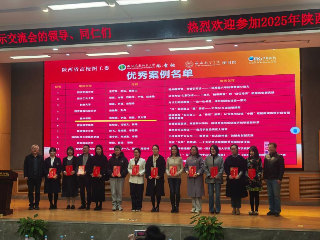 11月18日,由陕西省高等学校图书情报工作委员会主办,西北农林科技大学图书馆承办的“2025年陕西高校图书馆读者服务案例展示交流会”在杨凌成功举办。我校图书馆杨雪晴团队申报的《榆林学院“五乐育人”之“乐读”焕新:AI馆员与驻馆“小图”赋能阅读体验,开启智慧服务新篇章》案例,历经全省170个申报案例的初评筛选,在63个入围展示的案例中脱颖而出,荣获优秀案例。充分展现了我校图书馆在“五乐育人”理念引领下的服务创新成果与育人实效。
