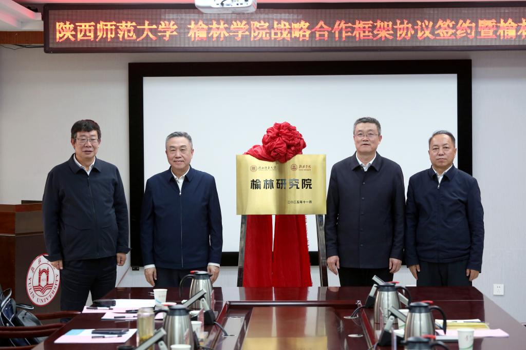 随后,在两校主要领导的共同见证下,董治宝与卜耀军代表双方签署战略合作框架协议,李晓兵与康伟共同为榆林研究院揭牌。双方合作将充分发挥陕西师范大学的学科优势和教育资源,结合榆林学院的特色和发展需求,重点在学科专业建设、师资队伍培养、科研平台共建等方面取得突破。