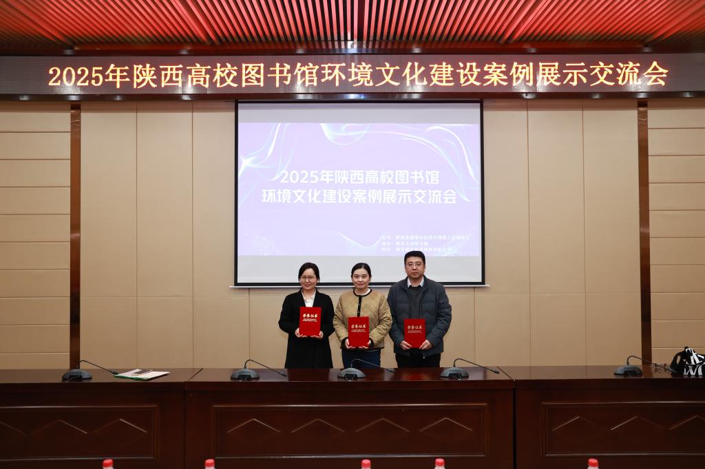 近日,2025年陕西高校图书馆环境文化建设案例展示交流会在西安圆满落幕。此次会议由陕西省高等学校图书情报工作委员会主办、西北大学图书馆承办,全省多所高校的63个优秀案例同台竞技。我校图书馆费晶、李金、杨雪晴三位馆员携案例参赛,经激烈角逐脱颖而出,分别斩获一等奖、二等奖、三等奖,充分彰显了我校图书馆在“五乐育人”理念引领下,环境文化建设的丰硕成果与鲜明育人实效。