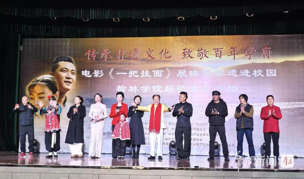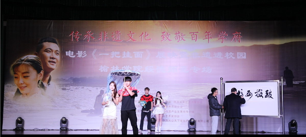 12月30日,“传承非遗文化 致敬百年学府——电影《一把挂面》展映暨非遗进校园”专场活动在我校绥德师范校区隆重举行。陕西省政协原副秘书长郭占平、陕西省作家协会副主席龙云、榆林学院党委副书记、绥德师范校区党工委书记马亚军,榆林市文联相关领导、绥德县、吴堡县有关负责同志,以及绥德师范校区全体师生参加了本次活动。