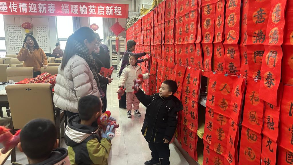 党委副书记马亚军与在场教职工亲切交谈,悉心询问大家的工作与生活近况,并致以诚挚的节日慰问。红幅铺展、妙句成双,书法协会老师们们挥毫书写“福”字与春联,将美好的新春祝愿凝于笔端、汇入墨香,把暖暖情意传递到榆苑之中。