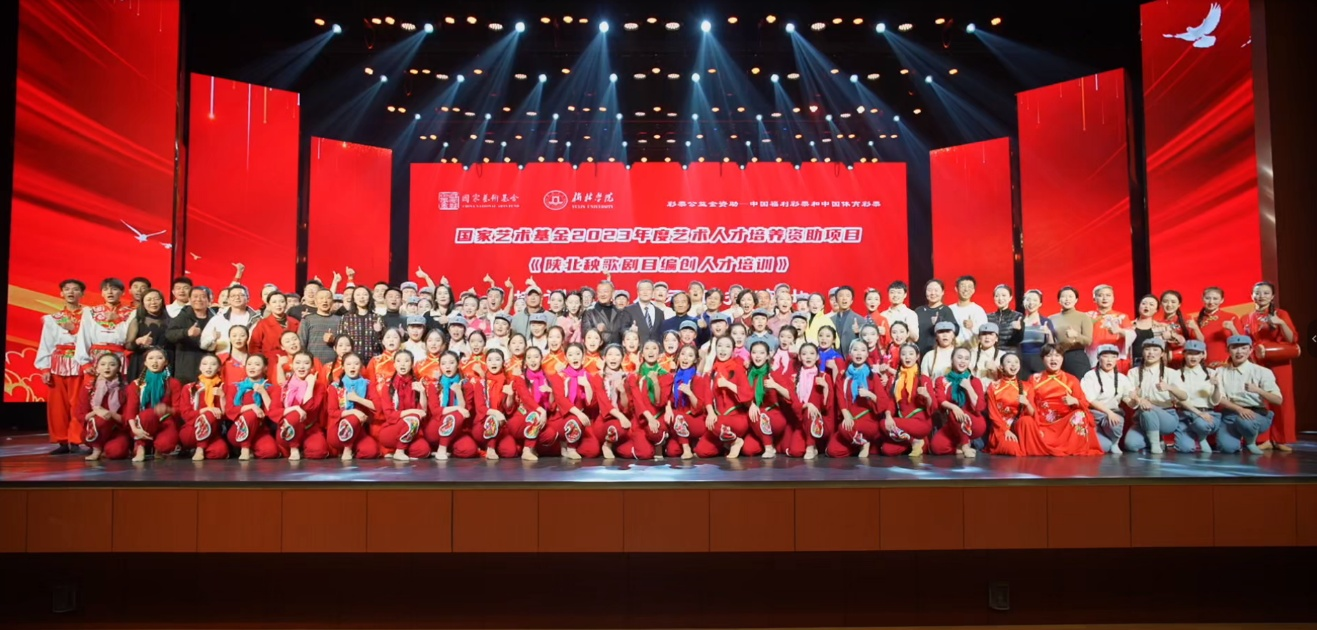 科研引领,夯实传承理论根基。基地以高水平科研项目支撑非遗传承创新,成果丰硕。2023年,成功获批国家艺术基金《陕北秧歌剧目编创人才培养》项目,开展了为期118天的培训,涵盖编导理论、素材教学、编创实践、田野采风四大板块,邀请国内一流舞蹈理论家、编导名师及国家级非遗传承人授课。同年12月成果展演晚会成功举办,推出《红火的大秧歌》《山丹丹随想曲》等原创剧目,多所高校青年艺术家与非遗传承人同台献艺,展现“奋斗新陕北·秧歌新时代”主题,获业界高度评价。2023年启动校级科研课题申报,设立重大、重点、一般三类项目,围绕教育教学、历史演变、社会功能、创新发展等方向开展研究。此外,2024年陕西省文旅厅非遗课题《非遗陕北秧歌与旅游文化融合发展路径探究》、2025年陕西省艺术科学规划项目《陕北秧歌在红色文化传承中的艺术重构与创新实践》等相继立项,为陕北秧歌传承发展提供坚实理论支撑与实践指引。
