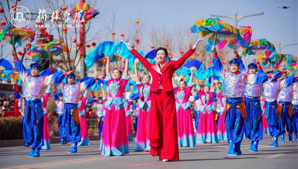 在备受瞩目的“陕北榆林过大年”秧歌展演中,榆林学院百余名师生连续两年代表榆林市教育系统精彩亮相,凭借出色的演绎赢得了社会各界的广泛关注与一致好评。作为我校“非遗进校园”成果的集中展示,师生们以饱满的热情和精湛的技艺,生动诠释了当代学子守正创新的精神风貌,集中呈现了学校多元融合的文化氛围与勇于探索的育人成果,为区域教育高质量发展注入了源源不断的文化动力。
