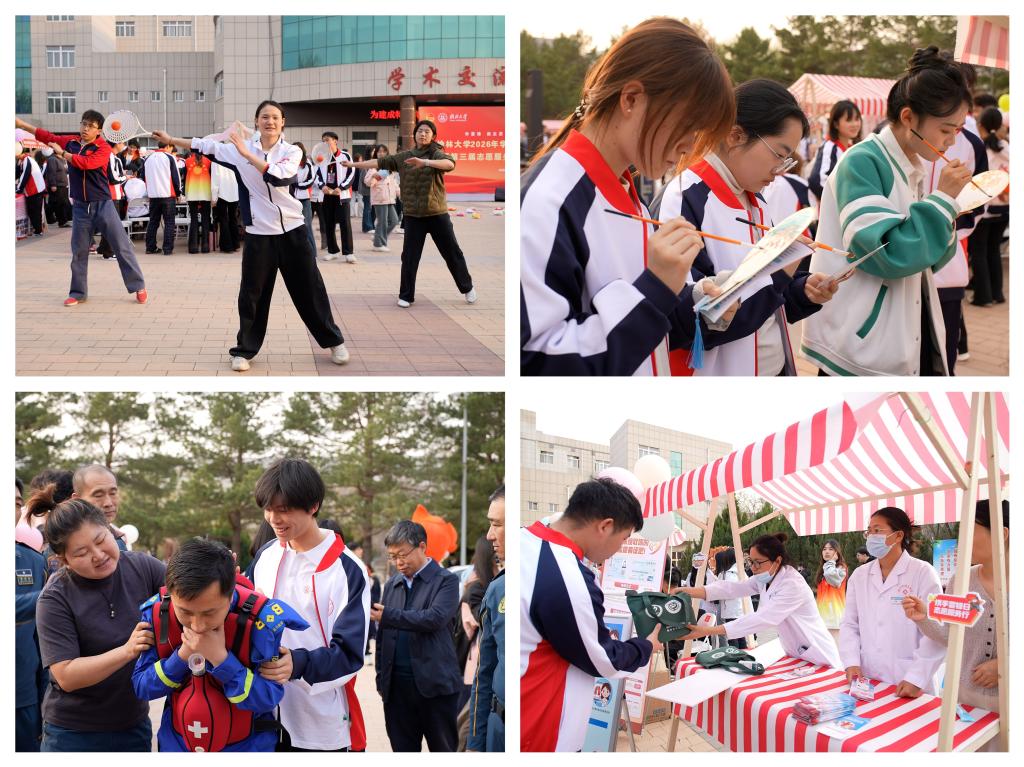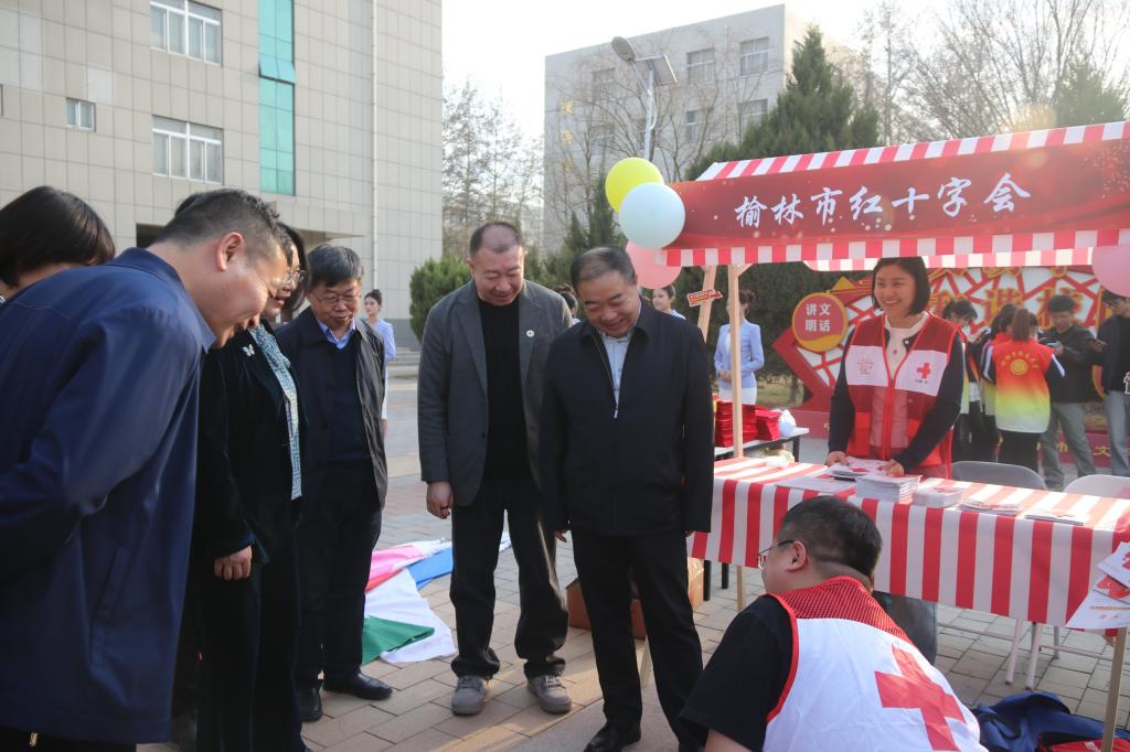 启动仪式结束后,卜耀军等来到志愿服务互动展示区,与参与活动的学生亲切交流,详细了解各类志愿服务项目开展情况,对同学们的奉献热情与创新实践给予充分肯定。展示区内,各二级学院紧扣专业特色,联合打造了形式丰富、内涵多元的志愿服务体验活动,涵盖手工创作、科普互动、便民服务、非遗文化体验、法治宣传、益智实践等多个品类,真正实现专业所学与志愿服务深度融合,充分展现了各学院的育人特色与榆大学子的青春担当。此外,榆林市公安局交通管理支队二大队、榆林市红十字会、榆林市蓝天救援队等多家校外单位同步到场设展,带来涵盖健康医疗、交通安全、应急救援、无偿献血、金融安全等多领域的一站式便民志愿服务,通过现场演示、知识宣讲、实操教学等多样形式,将实用技能与暖心服务送到师生身边,让雷锋精神在沉浸式实践中真正落地生根、蔚然成风。