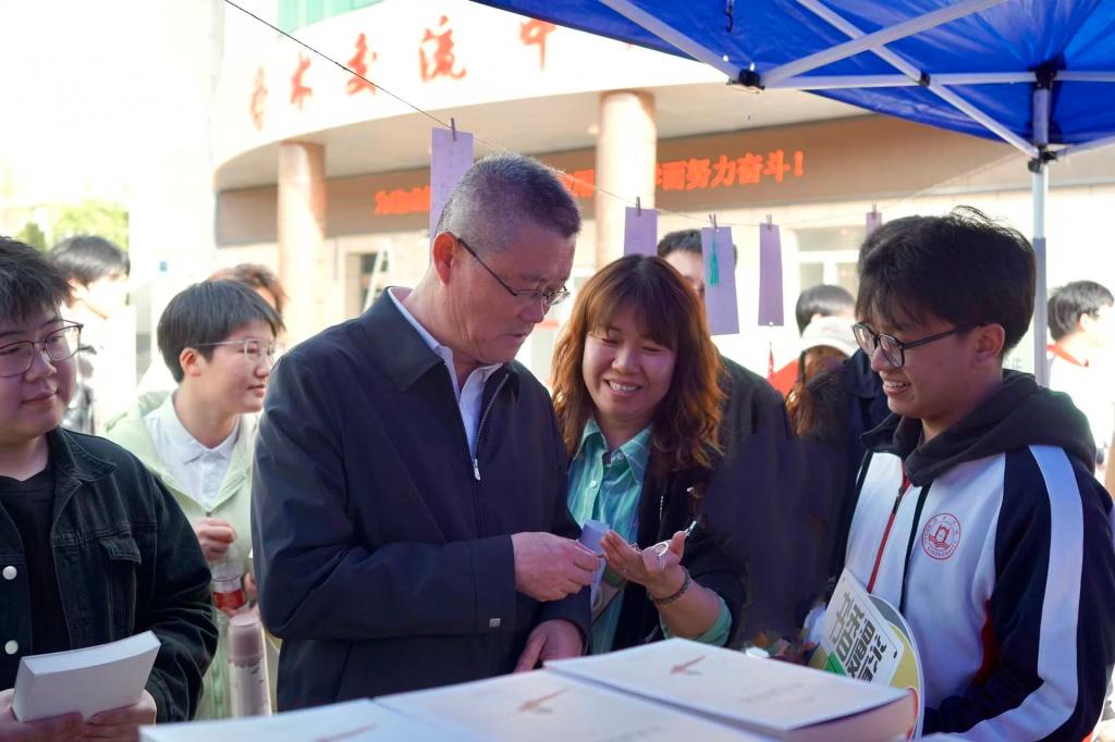会后,康伟来到2026年读书文化节系列活动现场,在乐读星光展区和“以书换春”书籍漂流区与同学们亲切交流,勉励学生们爱读书、读好书、善读书,让自己真正成为全面发展的一流应用型人才。