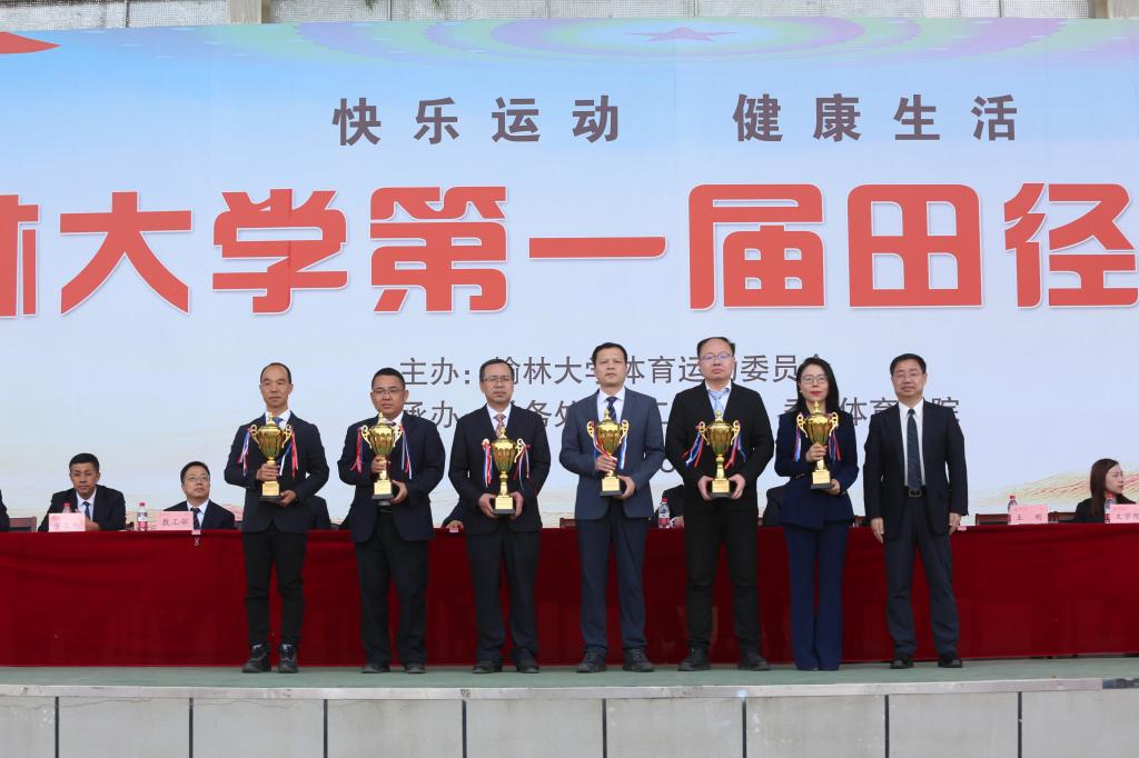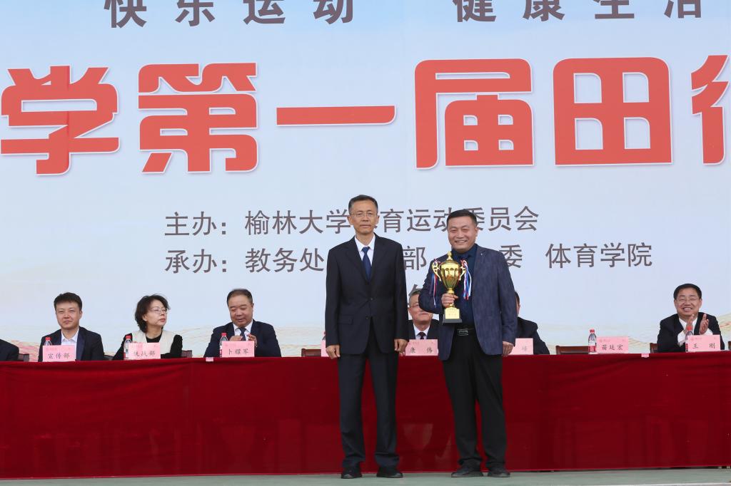 闭幕式上,总裁判长赵永刚宣布比赛成绩。化学与化工学院、能源工程学院、艺术学院、信息工程学院、建筑工程学院、管理学院6个学院荣获“体育道德风尚奖”;绥德师范学院、研究生院、现代农学院分别荣获普通组团体总分第一名、第二名、第三名,体育学院体教24级摘得专业组团体总分桂冠。与会领导分别为获奖学院代表颁奖,现场掌声雷动,致敬拼搏者的荣耀时刻。
