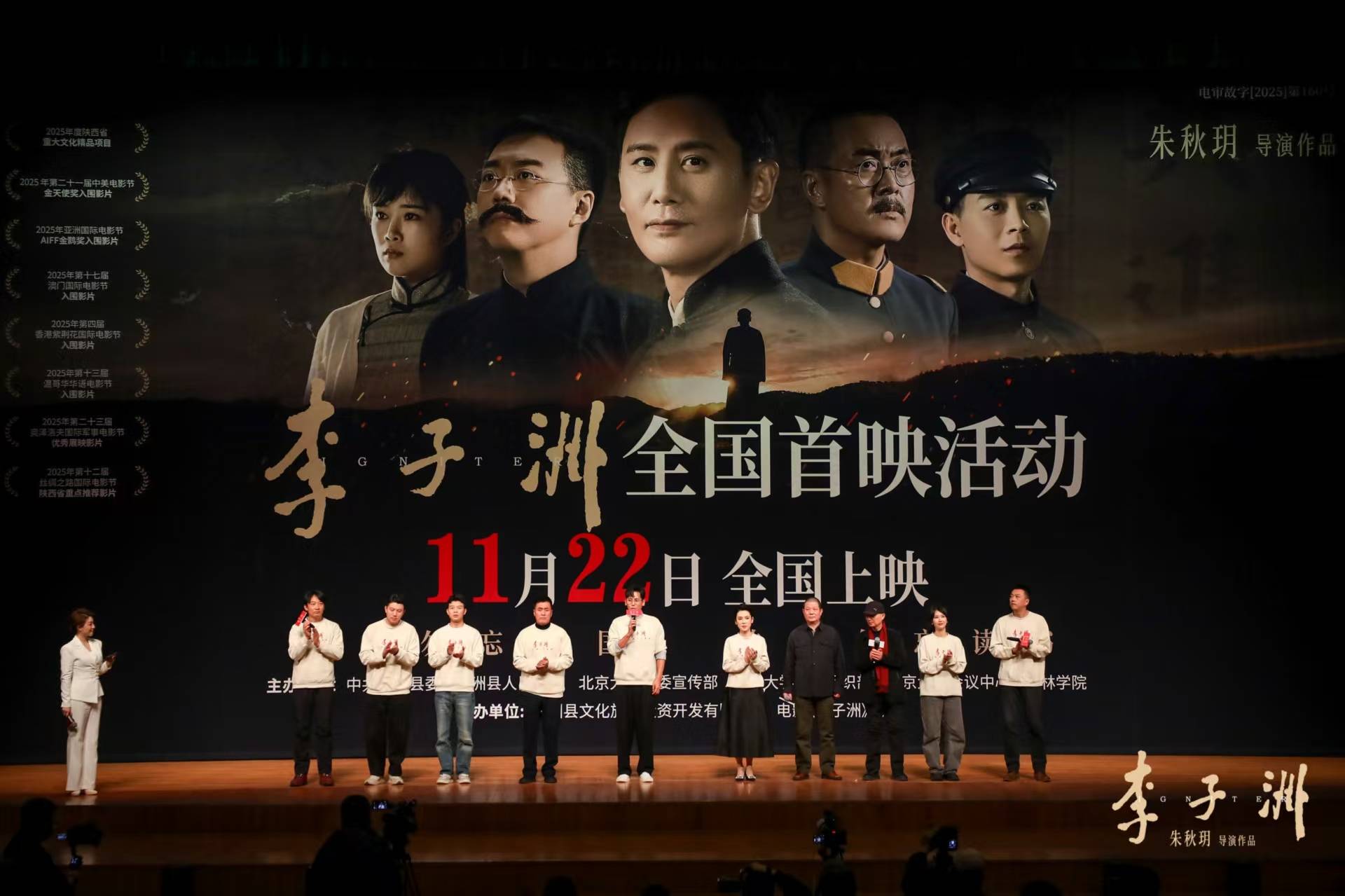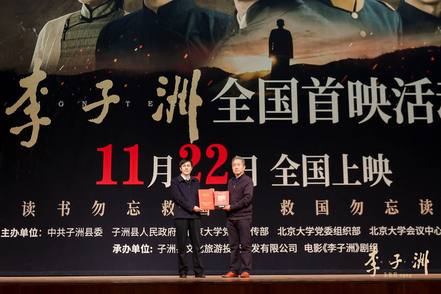 2025年11月16日,电影《李子洲》全国首映活动在北京大学百周年纪念讲堂成功举行。本次活动以“百年不忘 救国读书”为主题,由中共子洲县委、子洲县人民政府、北京大学党委宣传部、北京大学党委组织部、北京大学会议中心及榆林学院联合主办,子洲县文化旅游投资开发有限公司与电影《李子洲》剧组共同承办。